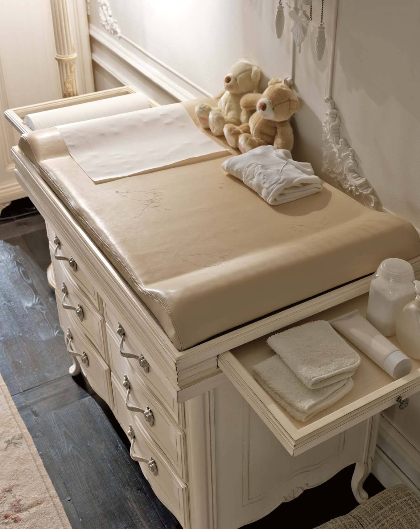 2. В таких столиках обычно есть множество выдвижных ящиков, встроенные органайзеры, открытые и закрытые полки, металлические корзины для грязного белья, выездные гладильные доски и многое другое. Мебельные производители буквально «на перебой» предлагают самые разнообразные конструкции с инновационной мебельной фурнитурой. Да и мама может самостоятельно обустроить комод для пеленания так, чтобы все нужное было под рукой.