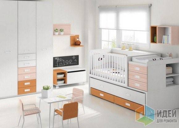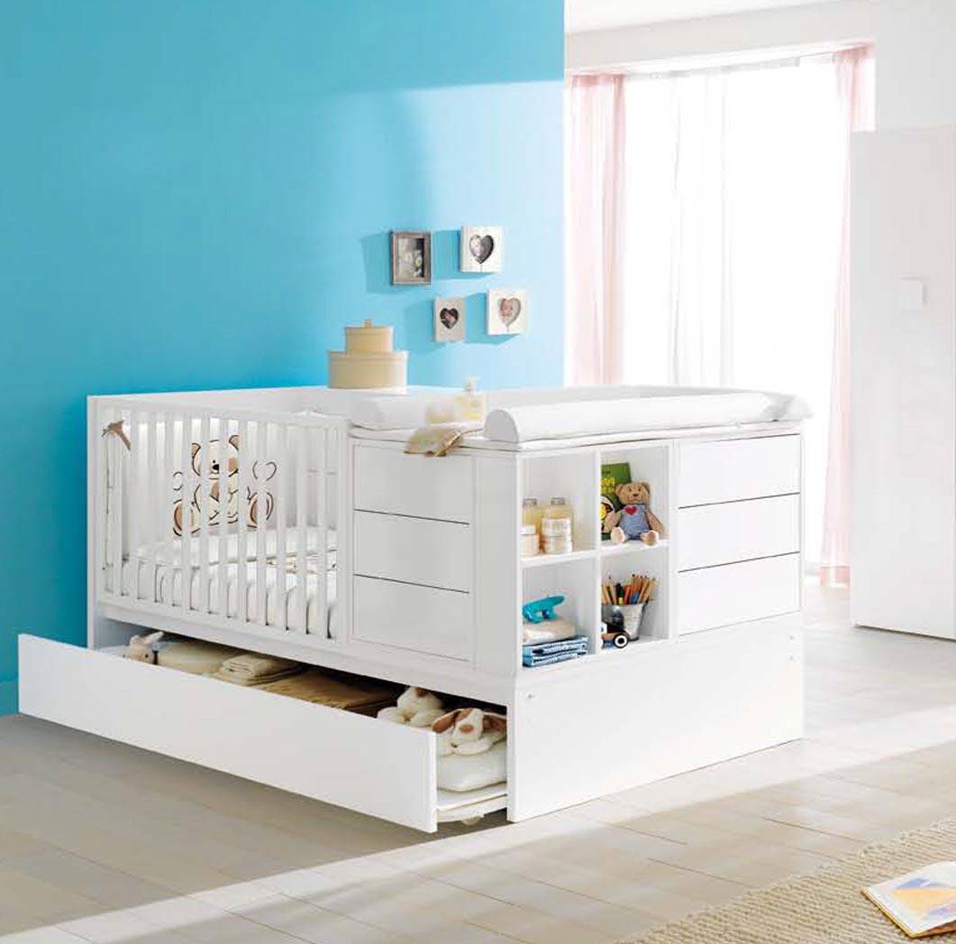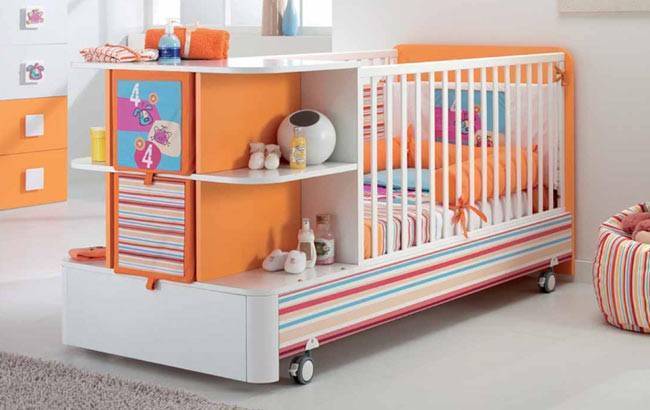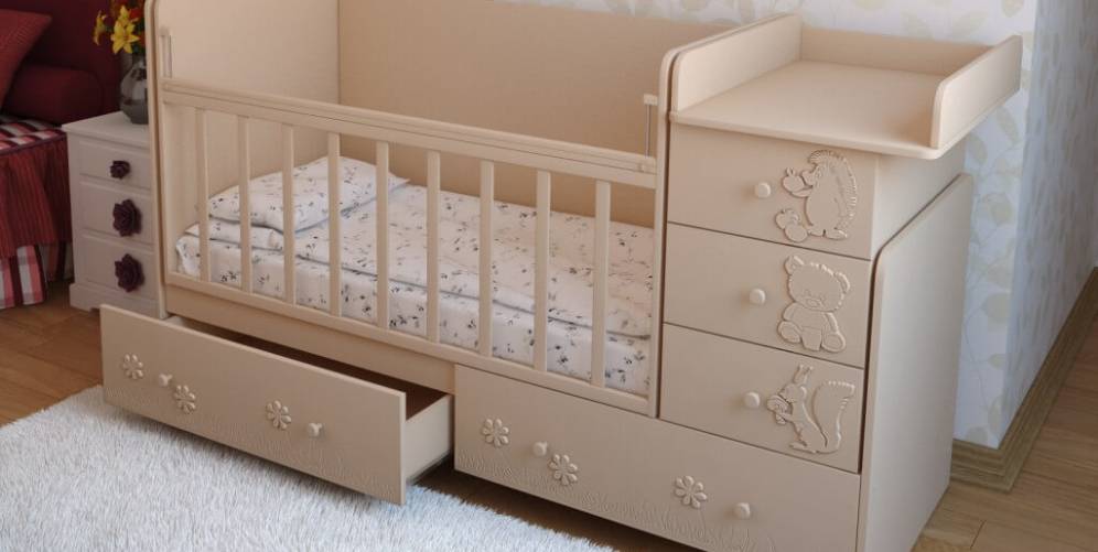 Это универсальное решение, совмещающее детскую кровать, комод и пеленатор.