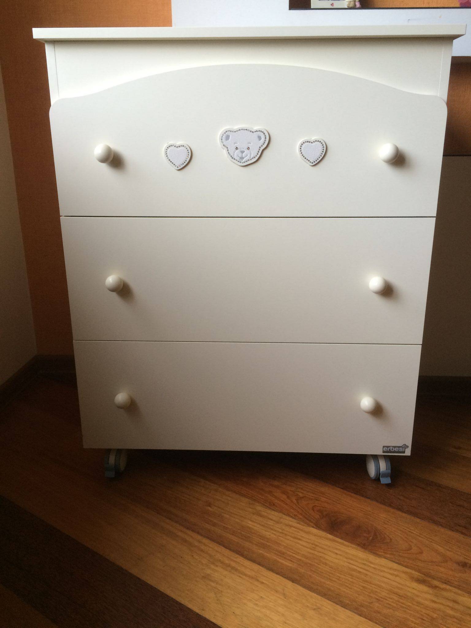 Еще одно преимущество такой кроватки-трансформера в том, что со временем ее можно разобрать на кроватку для школьника и стол для занятий, а комод использовать как шкафчик для тетрадей и учебников.