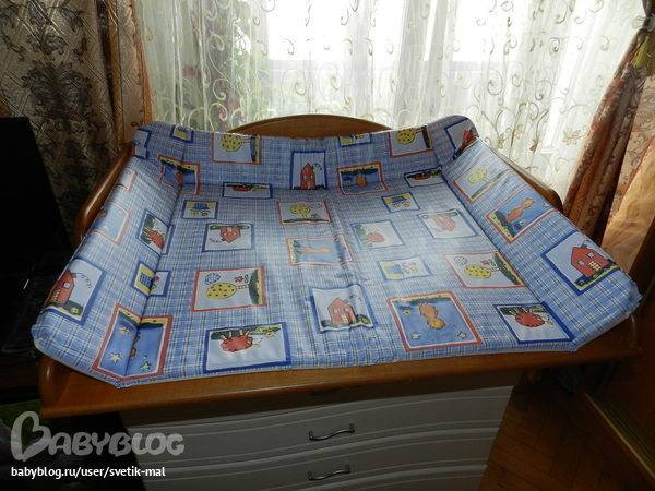 Обтягивают матрасик на пеленальный комод хлопчатобумажным чехлом, который защищает от загрязнения сам матрасик.