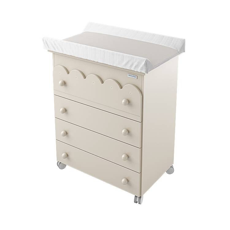 Комод с пеленальным столиком для новорожденных дополняется мягкой накладкой на столешницу – матрасиком. Он имеет высокие бортики, которые защитят ребенка от падения. Матрасик служит не только мягкой подстилочкой для малыша, но и защитой столешницы от загрязнений и влаги. При этом сама накладка легко поддается чистке и не теряет при этом форму и цвет.