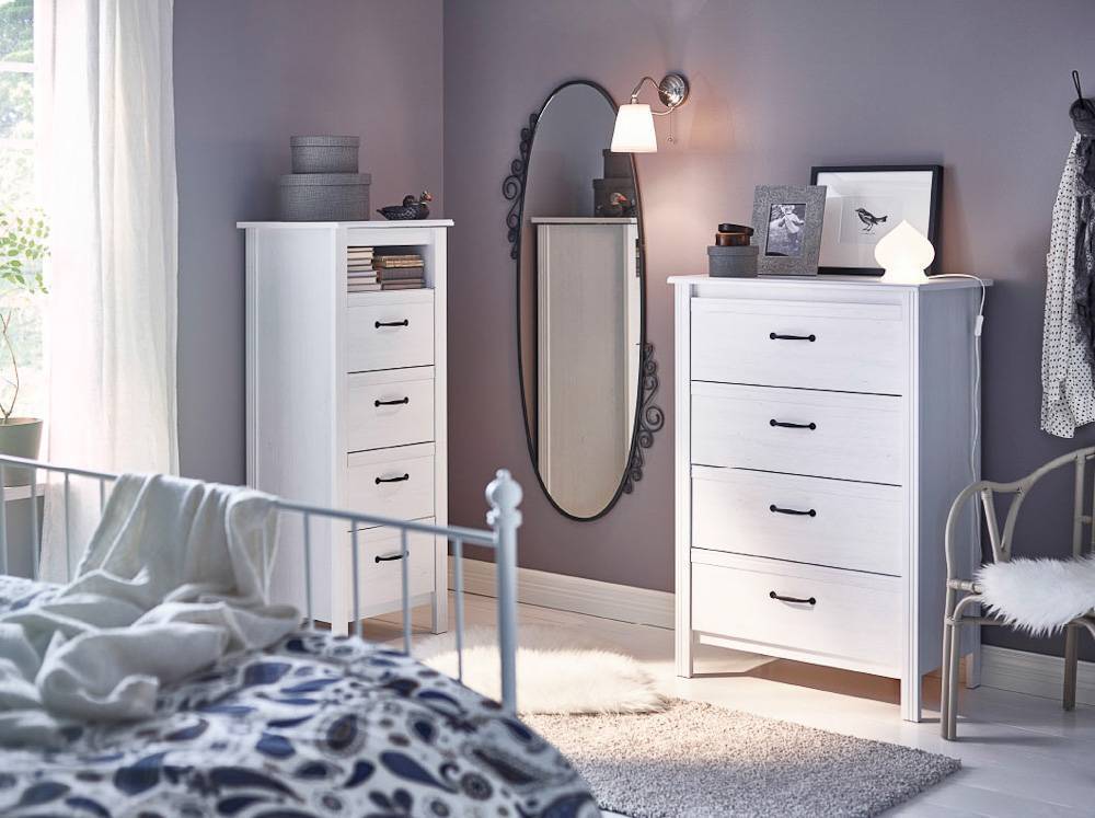 Комод обычно выбирают для просторной спальни, поскольку он не относится к базовым элементам мебели. Если комната имеет маленькие размеры, тогда можно обойтись и без него. Комод должен быть размещён таким образом, чтобы у вас был свободным доступ к его ящикам, которые должны выдвигаться свободно и не упираться в другую мебель.