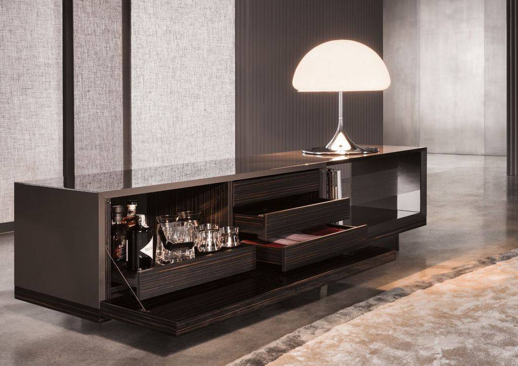 - Чтобы сделать гостиную неповторимой, устанавливают комод-бар или комод-шкаф. Такое дополнение выглядит очень стильно. Кроме того, такие модели выполняются из более дорогих материалов и очень привлекательны.
