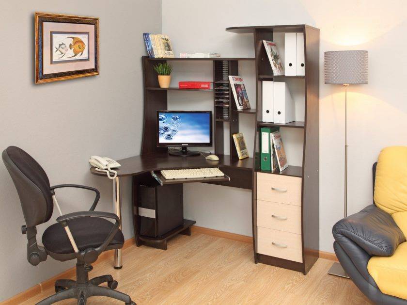 Планируя приобрести себе, модель углового компьютерного стола с полочками или ящичками необходимо определиться с наличием свободного от мебели пространства в помещении, потому что выбор между модулями полок и ящиков напрямую зависит от свободной площади комнаты.