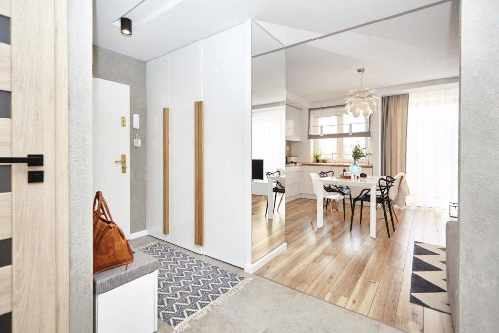 В настоящее время в магазинах найдется много многофункциональной мебели, которая идеально подойдет для небольших интерьеров. Речь идет о таких решениях, как пуфы с закрытой крышкой, диваны с контейнером или журнальные столики с выдвижными ящиками. Также неплохо купить дополнительные стулья для гостей, которые после использования можно сложить и положить, например, в шкаф или повесить на специальный крючок. Если вы хотите оптически увеличить интерьер, вам нужно взять стеклянный стол и совместить его с прозрачными стульями из пластика.