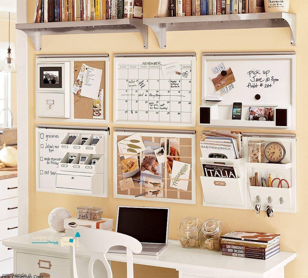 Часть стены, к которой примыкает письменный стол, можно необычно и с пользой оформить, установив здесь панель ДВП или меловую доску. Теперь легко фантазировать над дизайном рабочей зоны, дополняя ее календариками, заметками, мотивирующими цитатами, рисунками и прочими мелочами.