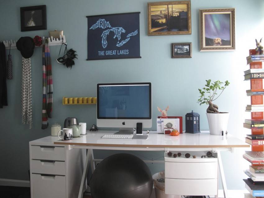 Следующий этап вашей работы — это определение правильного месторасположения стола. Естественно, чем меньшее пространство будет занимать компьютерный стол, тем лучше, так как полезная площадь не будет загромождаться. Но при этом сильно минимизировать ее также не стоит, так как тогда этот предмет мебели вряд ли будет выполнять свое многофункциональное назначение.