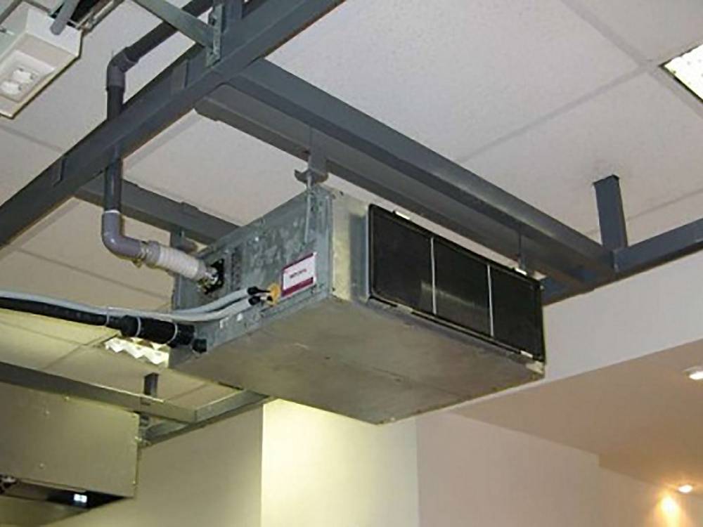Если вентиляционный агрегат канальный — внутренний блок монтируют в коробе или над подвесным потолком. Монтаж, таким образом, не нарушает дизайн помещения, ведь все оборудование скрыто за потолком, при этом подача воздуха осуществляется через декоративные решетки.