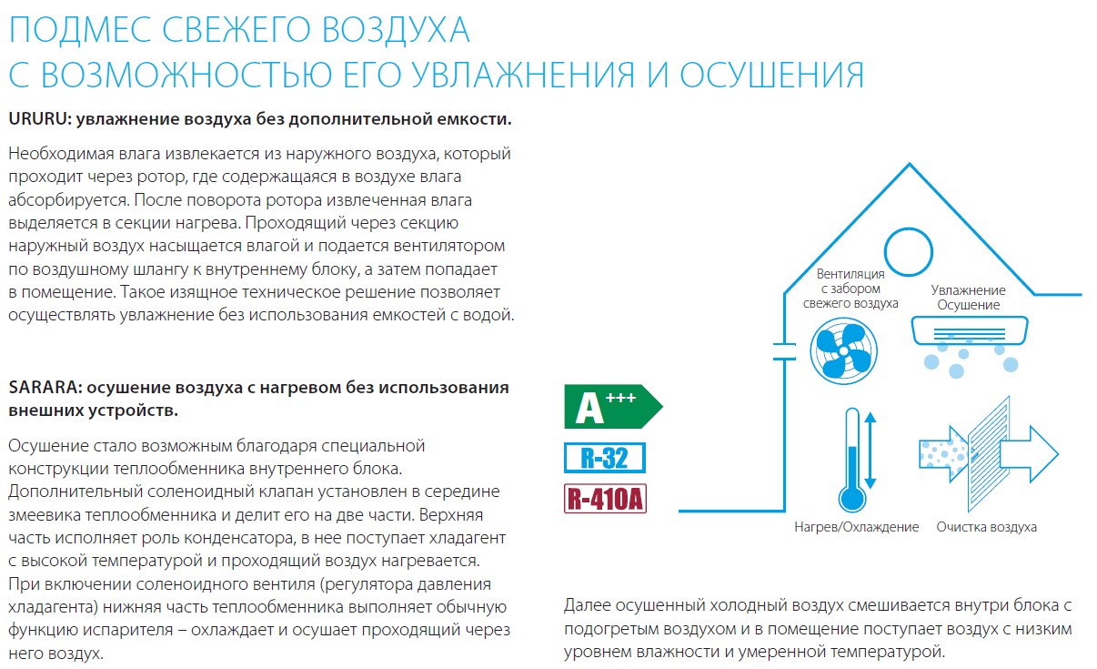 - Работа в режиме кондиционирования и вентилирования;