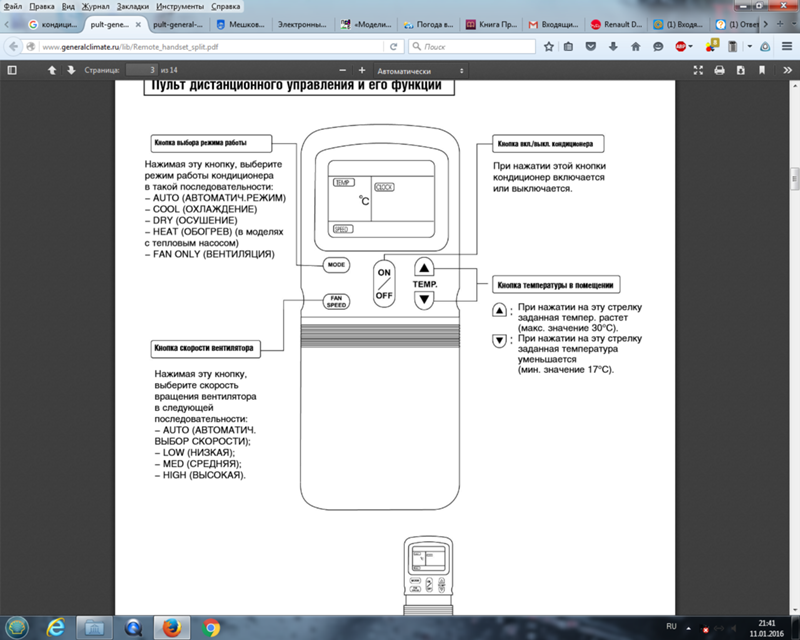 Особое внимание в инструкции по эксплуатации уделяется безопасному пользованию кондиционером General climate gc. Подробное описание правил эксплуатации снабжено рисунками. Приведена схема прибора с обозначением всех его составляющих частей