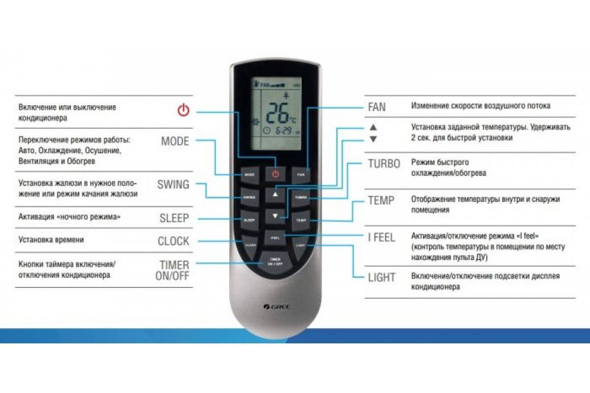 Естественно, что у такого устройства есть пульт дистанционного управления. Он позволяет менять режимы и настраивать кондиционер на расстоянии, что вполне логично для подобной техники. Это достаточно удобно и практично.