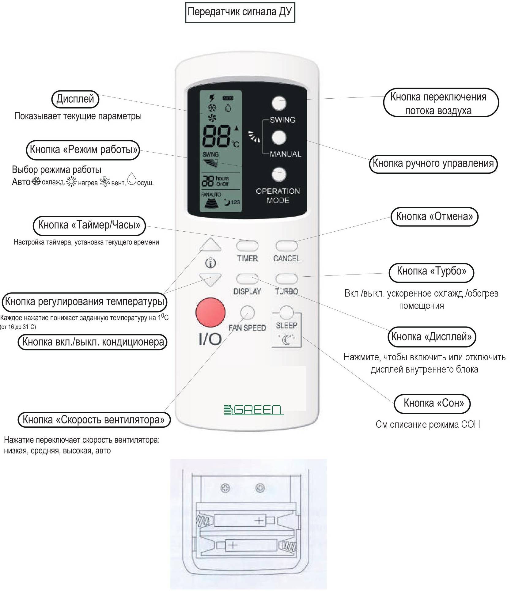 Порой у покупателей не получается настроить сплит системы на холод по одной простой причине — пульт ДУ используется неправильно. Первым делом, установите в него новые батарейки. Если вы месяцами не используете кондиционер, лучше извлечь батарейки из пульта и вставить их только перед началом использования.