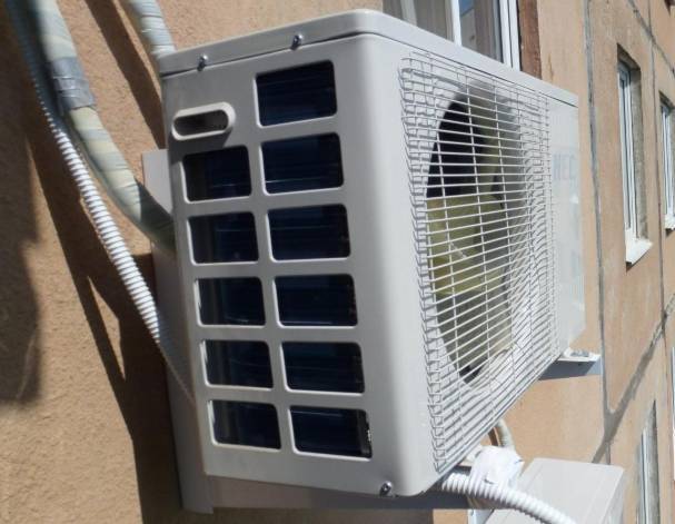 Внешний блок сделан из металла и является довольно компактным. Его масса составляет чуть менее 25 килограммов. Спереди можно найти решетку выходного типа, а сбоку располагается воздухоприемник.