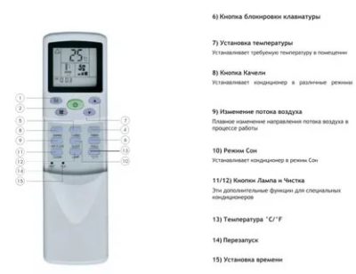 Устройство предназначено для регулирования и контроля работы сплит-системы. Все кондиционера Energolux имеют общую инструкцию по эксплуатации и схему кнопок. На пульте управления есть следующие функции: