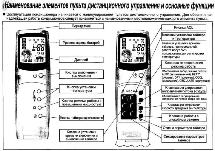 К каждому устройству в обязательном порядке прилагается описание основных возможностей и инструкция. Используя пульт для кондиционера, пользователь может:
