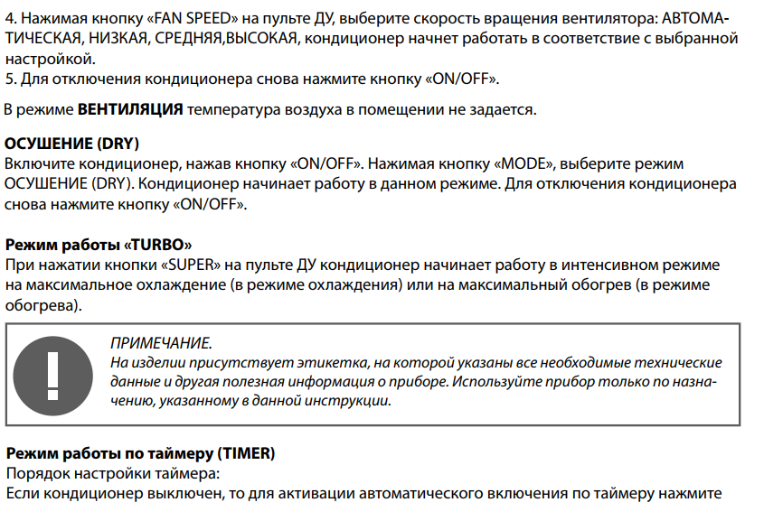 выключения кондиционера по таймеру.