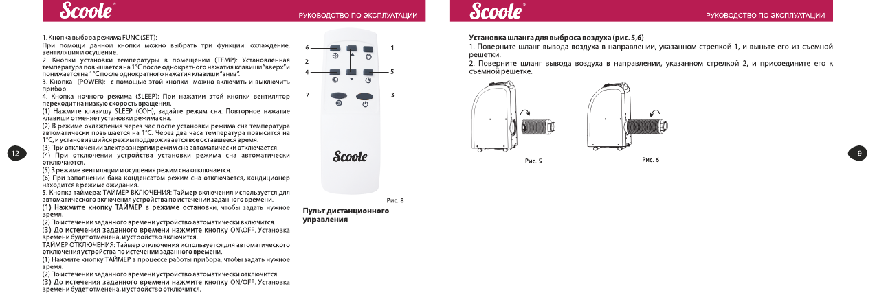 Инструкции к пульту управления и кондиционерам Scoole