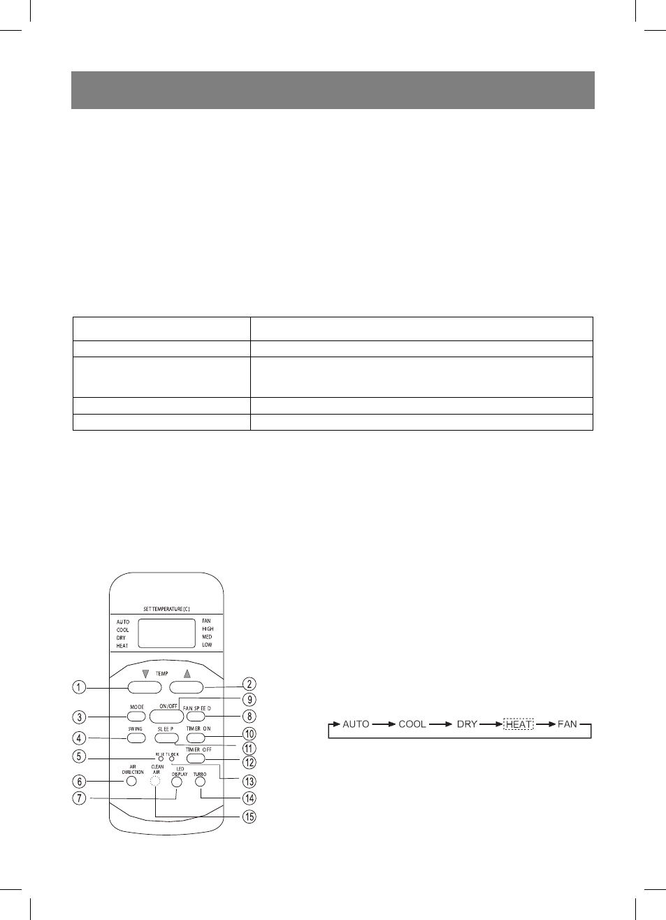 (HEAT) (отсутствует на моделях только с режимом охлаждения) и вентилятор (FAN).