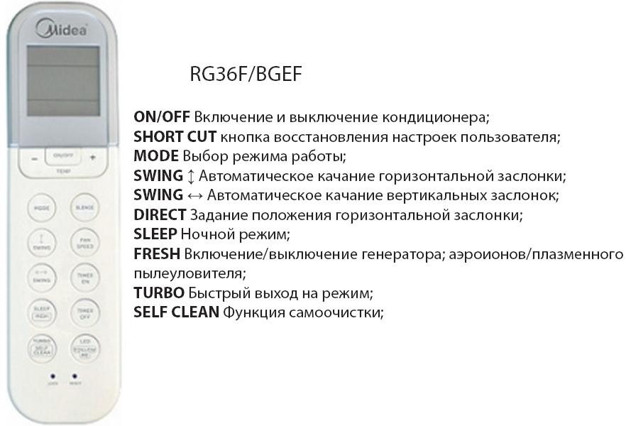 Инструкции к пульту эксплуатации и расшифровка кнопок для кондиционеров midea (мидеа, мидея)