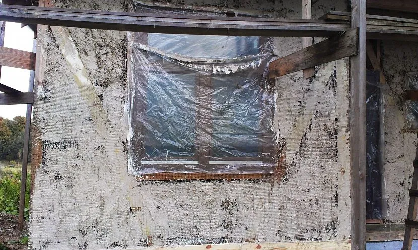 Сами проемы для будущих окон закрывают с помощью пленки или вспененного пенополистирола. Последние прибивают деревянными планками. Поверх пленки с внутренней стороны крест-на-крест набиваются доски, которые удержат укрытие в случае сильных ветров.
