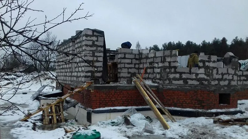 Строители не рекомендуют подводить строительство дома к зиме на этой стадии. Желательно, чтобы по стенам уже было уложено перекрытие.