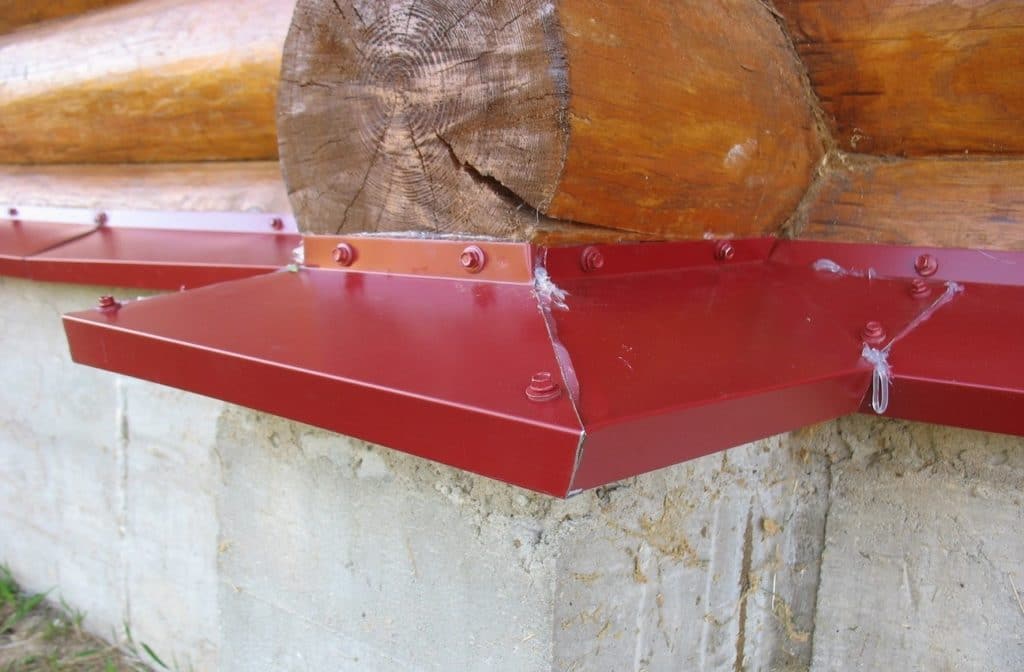 - Прежде всего, надо создать гидроизолирующую отсечку между материалами обвязки и фундамента. Это может быть рубероид (толь), нанесение битумного слоя и т. п.