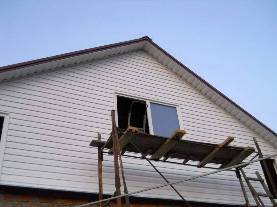 Процесс утепления мы уже описали, теперь рассмотрим другие этапы отделки крыши. Фронтоном называется верхняя часть фасада здания, которая ограничивается кровлей или, другим словами, это стена чердака. Можно выполнять отделку фронтона так же, как и стены дома, а можно использовать другие материалы, которые отличаются не только видом, но и цветом.
