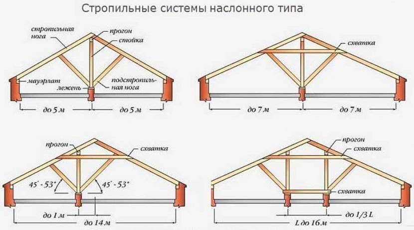 Но стоить заметить, что при обустройстве наслонной стропильной системы потребуется, чтобы, во-первых, внутри постройки была хотя бы одна несущая стена, а во-вторых, ширина здания была не менее 7 метров.