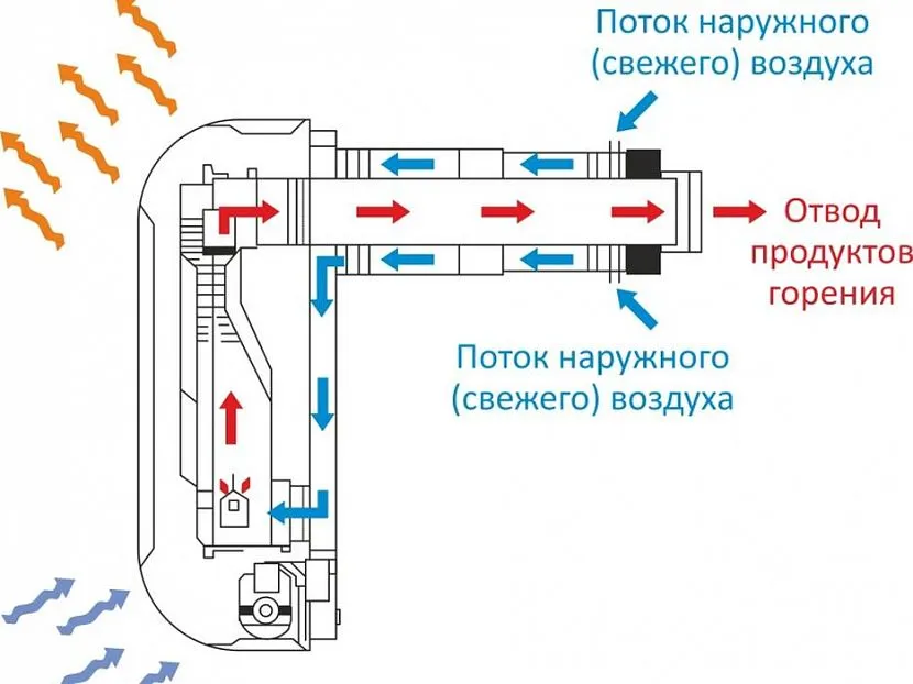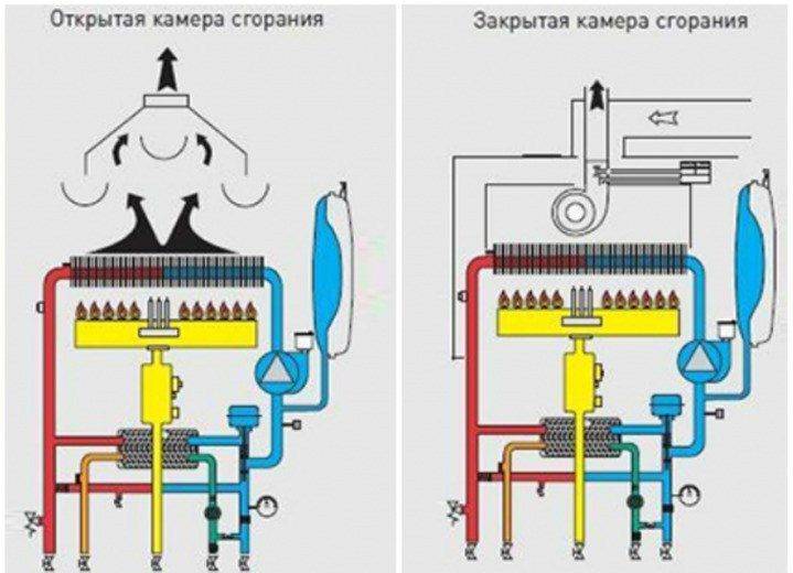 - модели с открытой камерой сгорании используют воздух помещения, который компенсируется холодным наружным воздухом.
