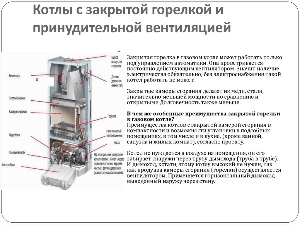 - В этом оборудовании применяется камера сгорания закрытого типа.