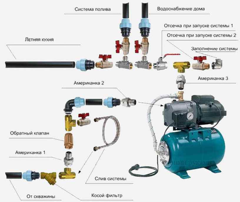 - отдельные коммуникации с кранами, ведущие к бане, летней кухне и т.д.