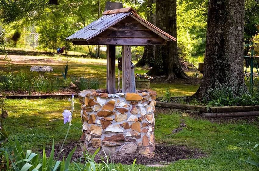 - Эстетический момент: хорошо оформленный колодец – замечательное украшение для участка в духе традиционализма. Некоторые дачники даже возводят имитацию колодца, на которую возлагается исключительно декоративная функция.