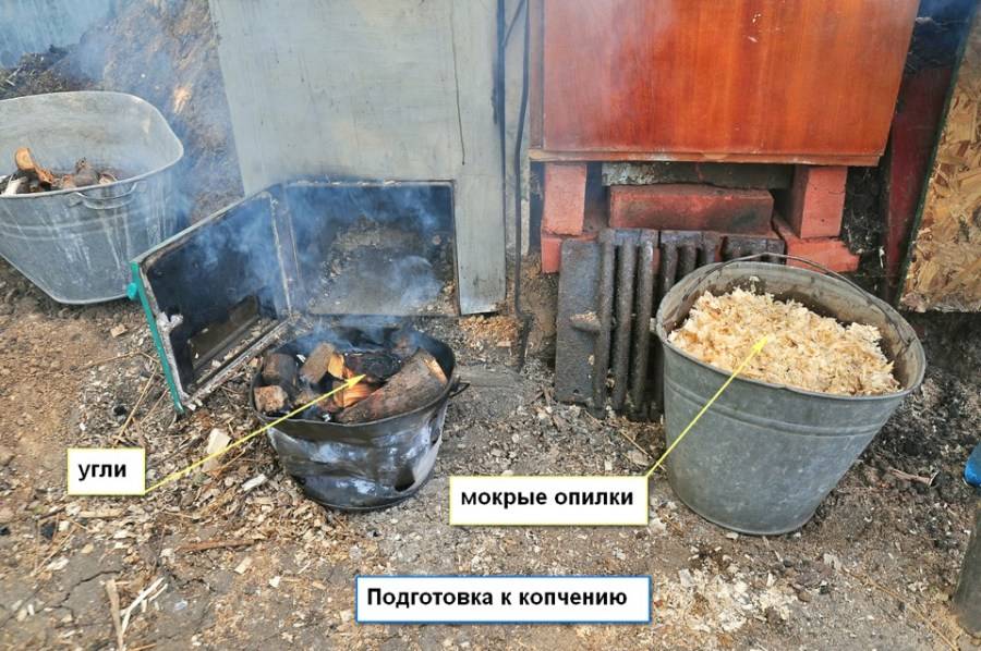 Внимание! Нельзя использовать хвойную щепу, поскольку копоть, образующаяся при ее тлении, испортит вкусовые качества копченостей. Опилки насыпают на дно топки горкой и поджигают