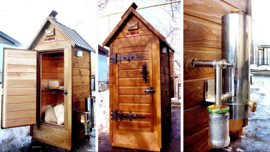Важно! Размер коптильни зависит от поставленных задач и предполагаемых объемов продуктов. Устройство должно быть крупнее горячей коптильни для дома, поскольку нет смысла в течение 3—5 дней коптить 2—3 маленьких рыбешки или куска мяса