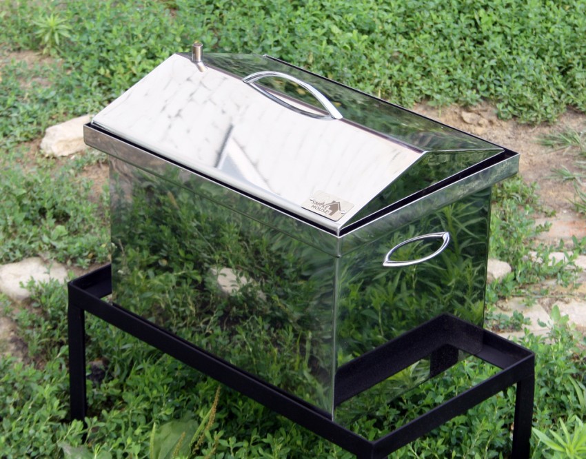 Это устройство похоже на малогабаритную бытовую коптильню с некоторыми отличиями: