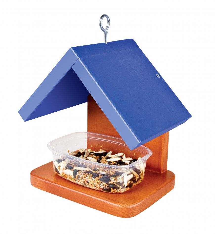 В случае непреодолимого желания создать необычные кормушки можно сделать их в виде домика. В этом случае обычно делают крышу на завесах, чтобы можно было ее открыть и поместить внутрь корм. Изготовить изделие можно так: