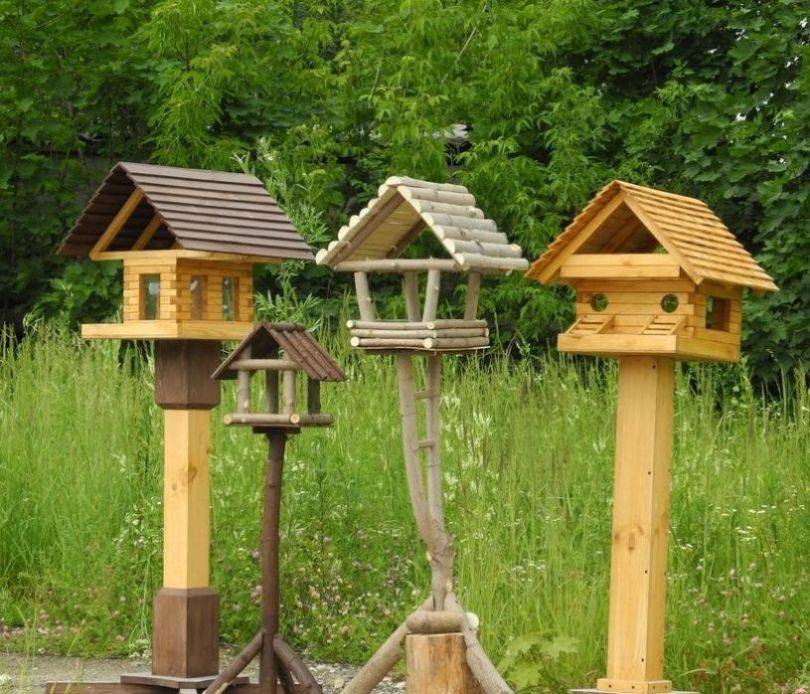 Такие деревянные кормушки тоже очень интересно смотрятся и будут полезны птицам.