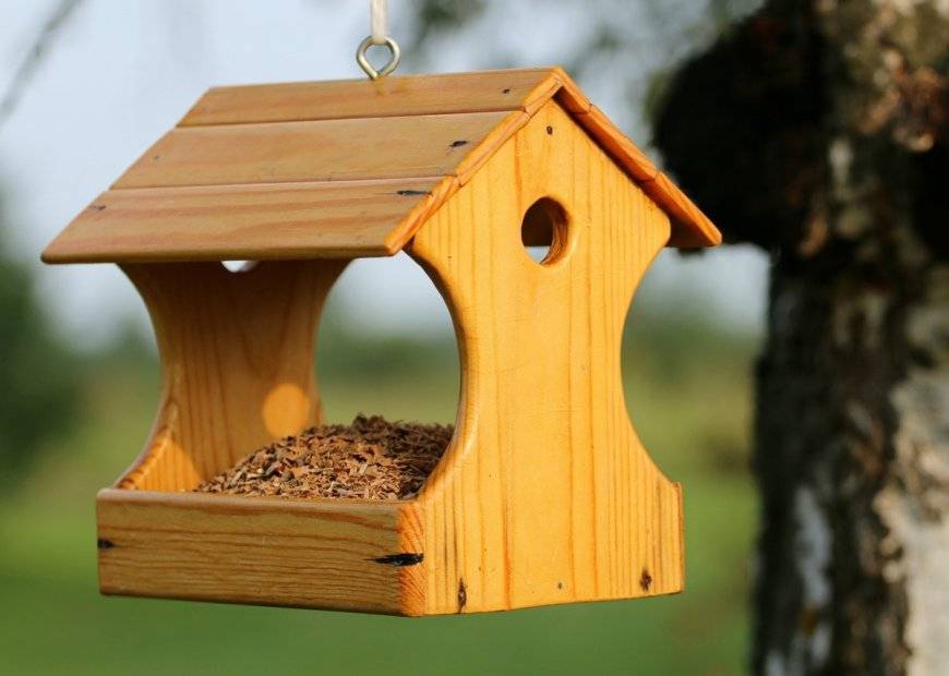 Существует несколько видов кормушек, которые можно сделать из дерева. Во-первых, это кормушки, которые выглядят как основание из фанеры или другого аналогичного материала с бортиками по краям, не дающим рассыпаться угощениям для пернатых.