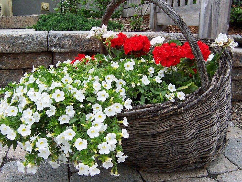 В вазонах и контейнерах петунии и калибрахоа будут сочетаться с пеларгонией зональной, фуксией, лобулярией, гелихризумом петиоларе, хлорофитумом, бальзамином, душистым горошком. В подвесных корзинах и оконных ящиках их можно сажать с ампельными растениями, такими как лобелия, плющ, зеленчук, будра плющелистная, вербена, пеларгония плющелистная и др.