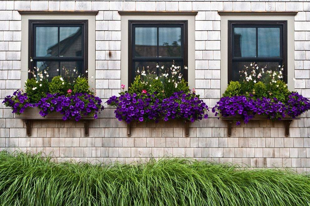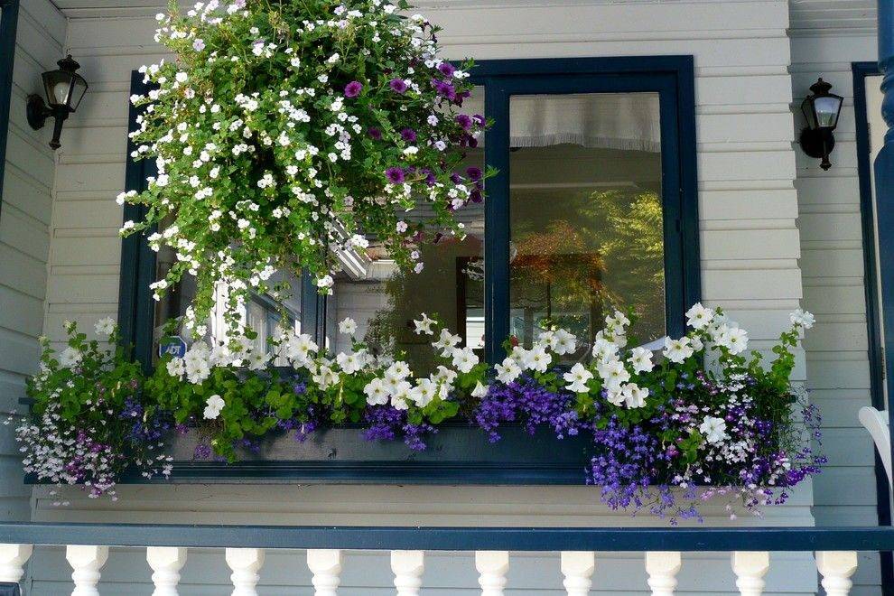 Оригинально смотрятся деревянные ящики с цветочным каскадом. Перед посадкой обработайте дерево раствором против гнили, плесени. Конструкция создается так: