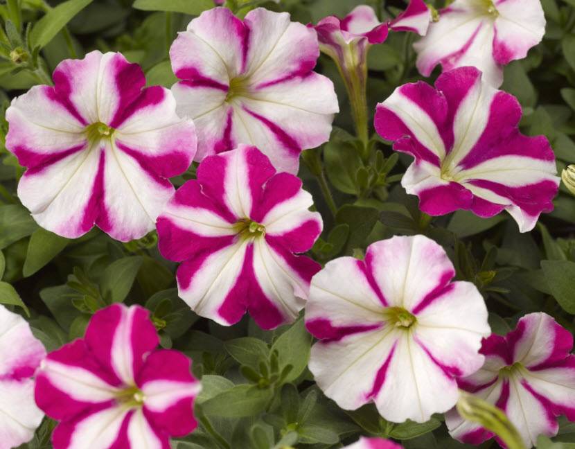 Грандифлора – группы петуний с небольшим количеством крупных цветков. У многоцветковых петуний Мультифлора цветки мельче, но они покрывают растения сплошным ковром. Петуния Флорибунда (Floribunda) занимает промежуточное место между этими двумя группами. На таких растениях образуются цветки среднего размера в среднем количестве.