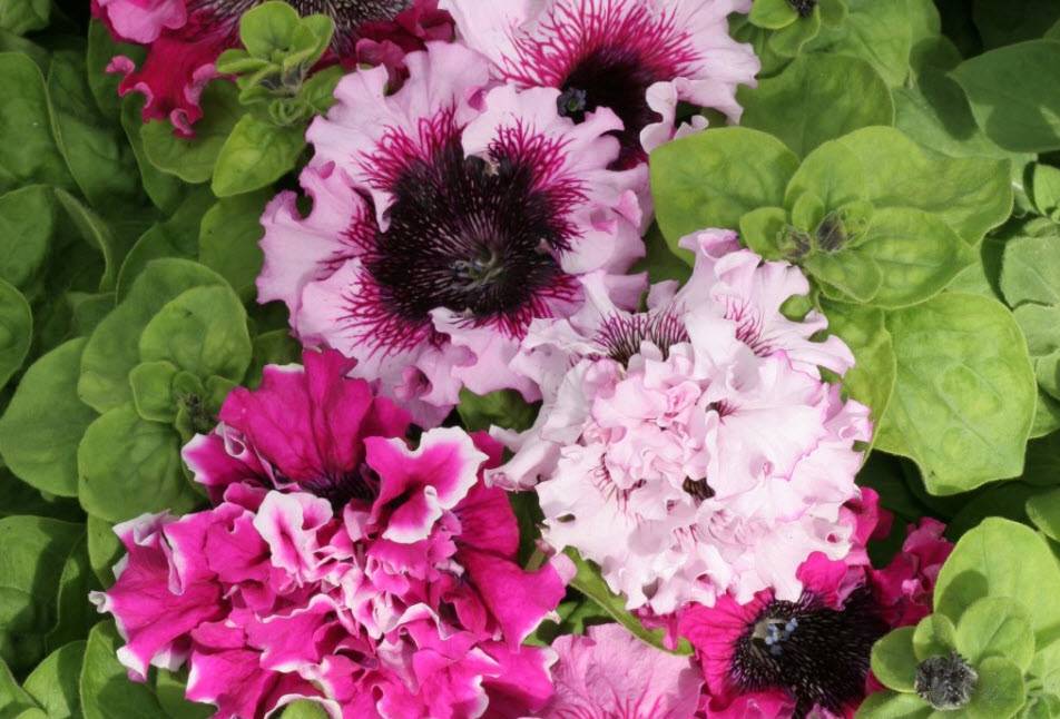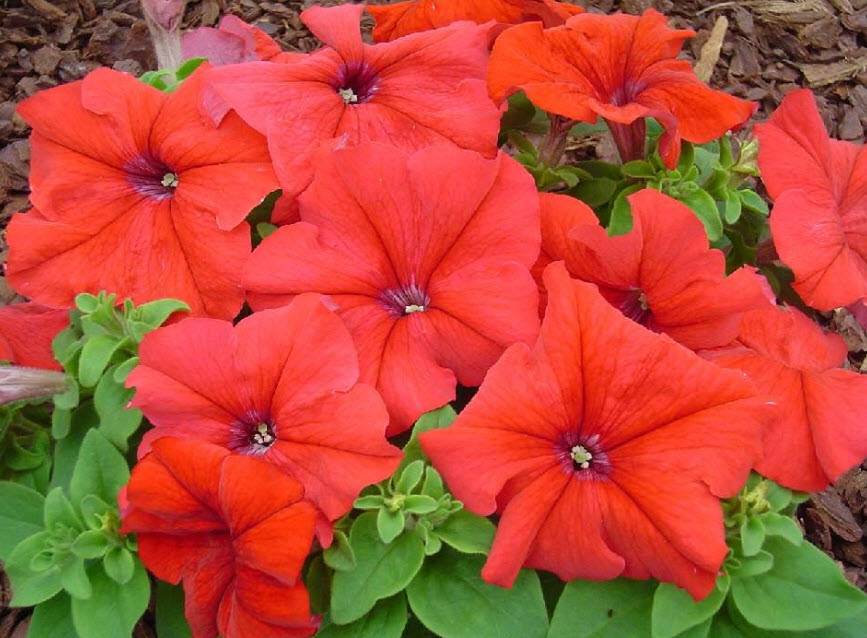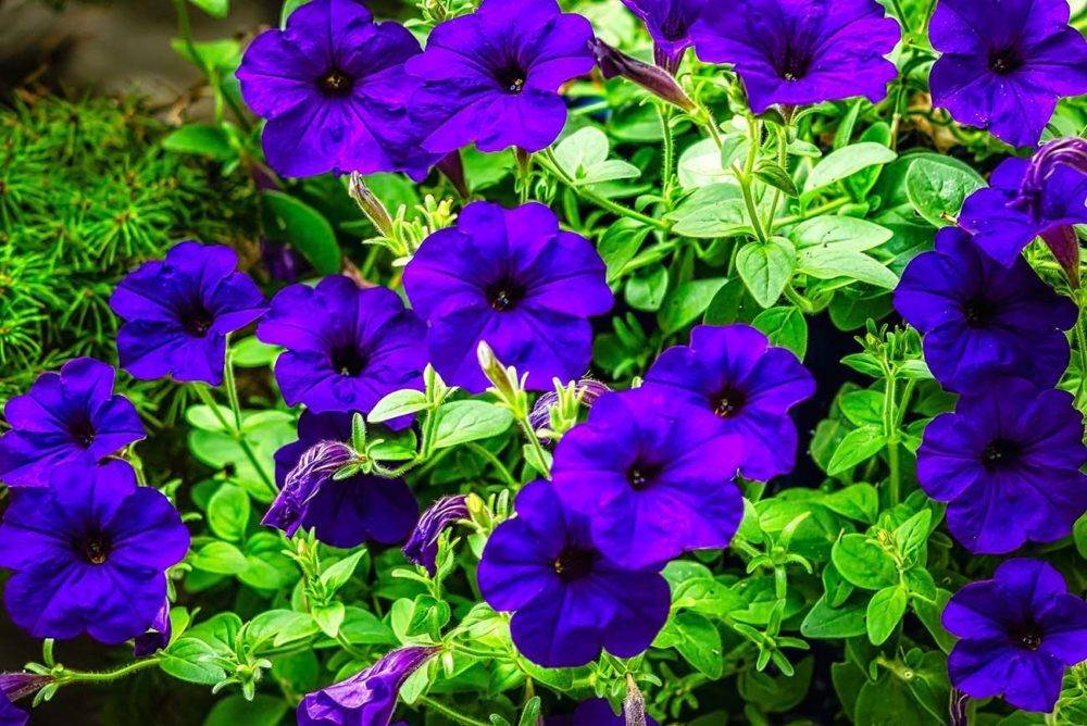 На клумбах, рабатках и миксбордерах петунии отлично выглядят в сочетании с цветущими растениями: вербеной, львиным зевом, бархатцами, агератумом или рудбекией. В ковровых посадках их можно высаживать рядом с различными декоративно-лиственными растениями, например, с колеусом или цинерарией.
