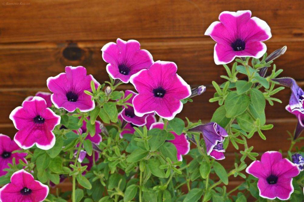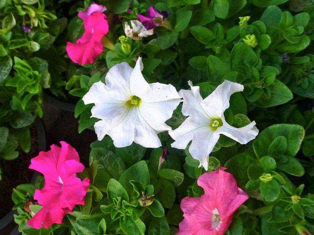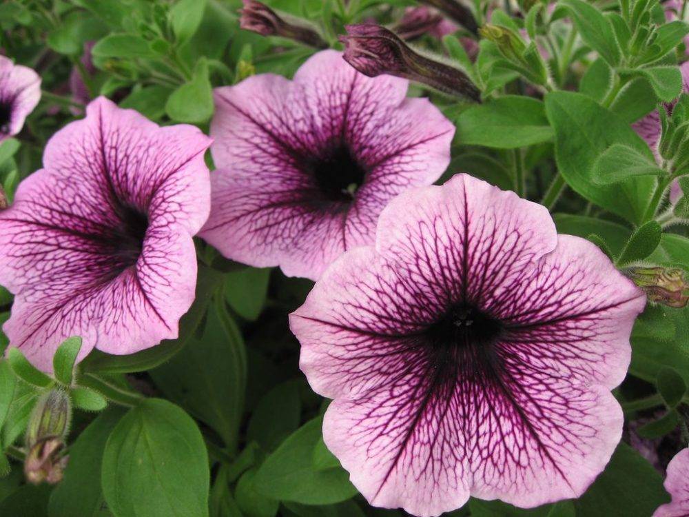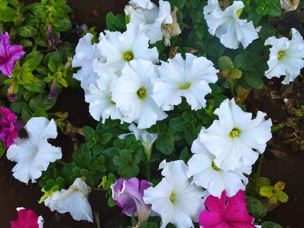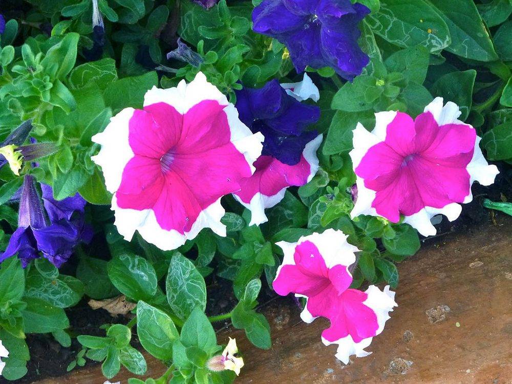 В конце весны — начале лета петунии очень эффектно смотрятся рядом с анютиными глазками, примулами, а также с луковичными — тюльпанами, гиацинтами, рябчиками, а позднее — с ирисами и лилиями. Возле водоема и на теневом участке они составят прекрасную компанию хостам, лилейникам, традесканции виргинской и декоративным злакам.