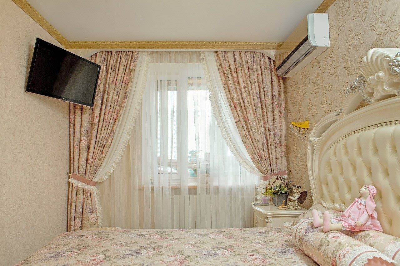 Текстиль должен соответствовать конкретному направлению дизайна. Также можно подбирать варианты на основе конкретной модели. Можно варьировать количество фестонов и складок на шторках, выбирать размер ширины плиссе, плотность материала. Что касается цвета, то он вовсе не обязательно должен совпадать с цветом текстиля, используемого в интерьере спальни.