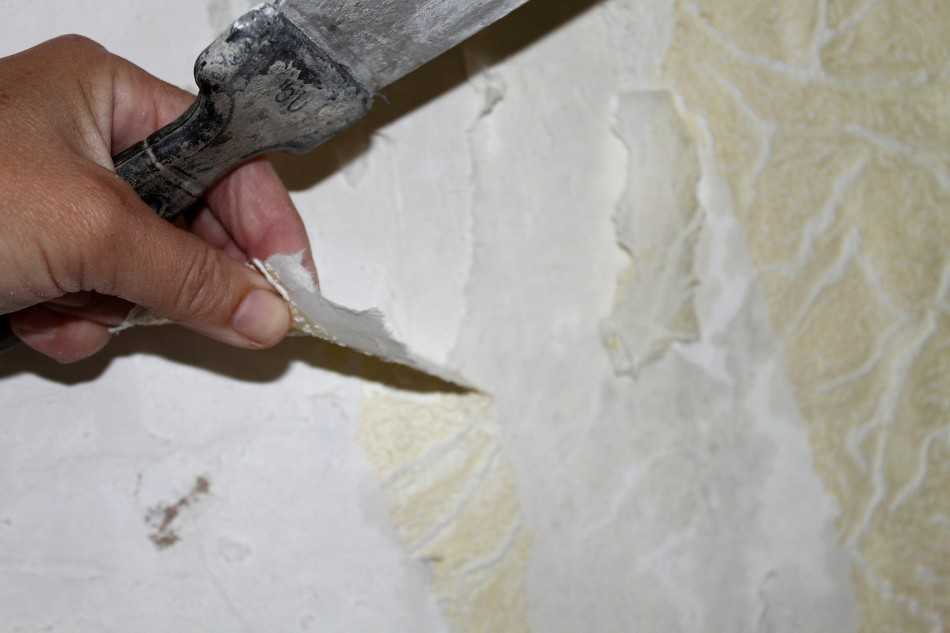 Побелку необходимо удалить до шпаклёвки. Это может быть размыв меловой или известковой побелки. Снятие обоев «на сухую» или путём размачивания. Современные обои легко удаляются сухим путём, но оставляют после себя тонкий слой изнаночной бумаги. Если стены не требуют дополнительного выравнивания, то этот изнаночный слой можно оставить. В последствие на него ровно и красиво лягут новые обои. Эмали и водно-дисперсионную краску смыть невозможно, поэтому она удаляется при помощи шпателя. А эмаль обрабатывается наждачной бумагой, для того, чтобы улучшить сцепление с наносимыми слоями.