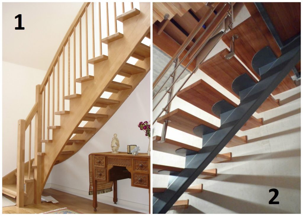 Различают несколько вариантов установки ступеней, влияющих на конструкцию и внешний вид лестницы: