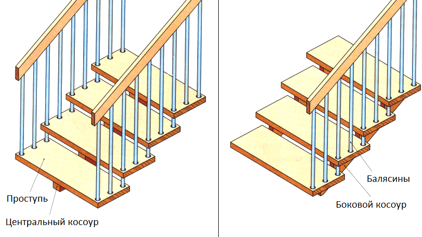 Одинарные. Это конструкции, в состав которых входит один косоур, расположенный посередине пролета.