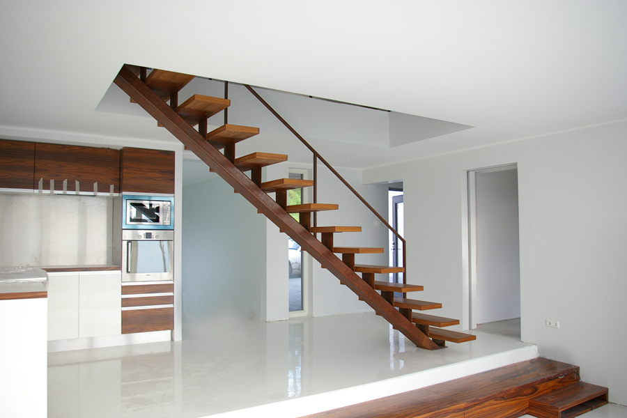 Одинарные косоурные лестницы визуально очень легки за счет ажурности