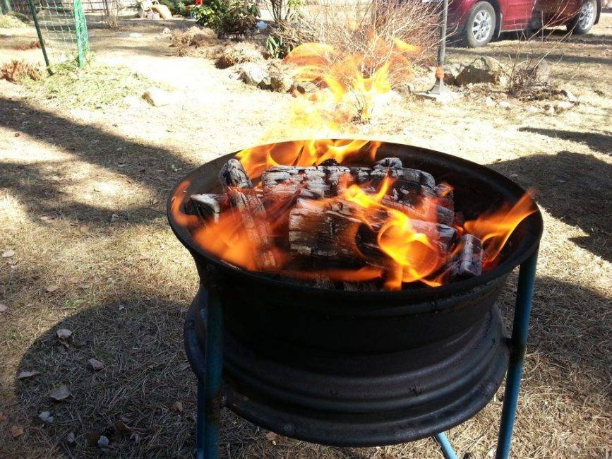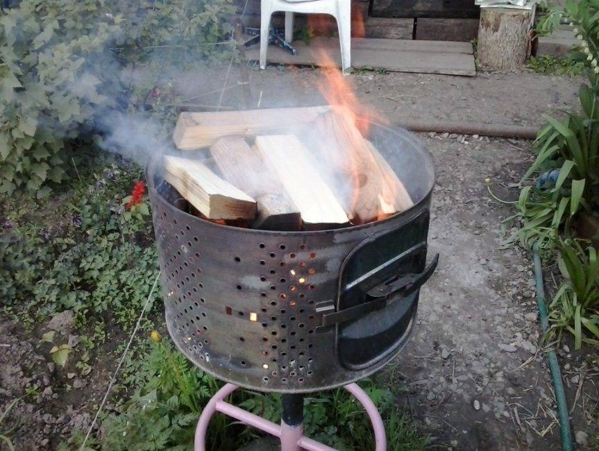 Если хочется приспособить для этого что-то из дачного хлама, то и здесь есть где развернуться. Для изготовления очага можно смело использовать старые предметы: бочки, тазы, бак от стиральной машины, диски от тракторных колес, котлы, большие ведра.