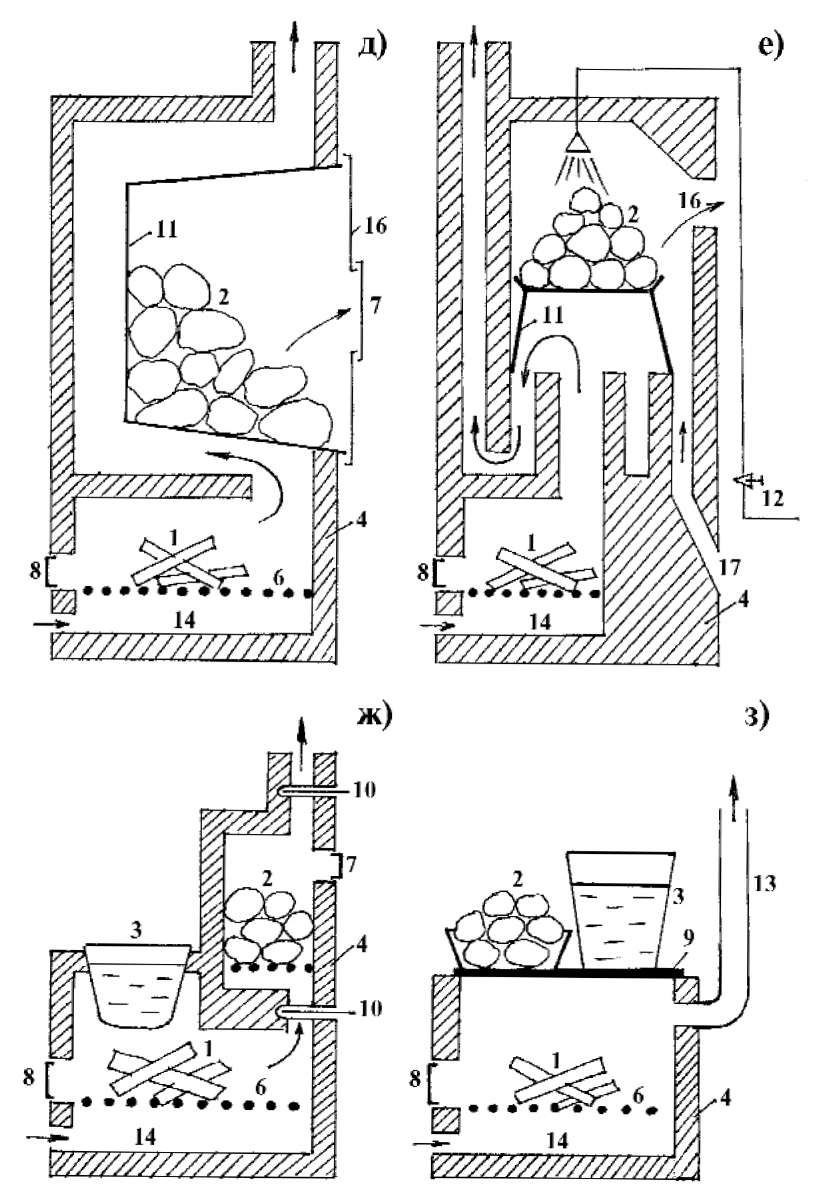 Как происходит нагрев, и куда выходит пар в каждом отдельном котле — на примере разных видов устройств с закрытой каменкой и открытой
